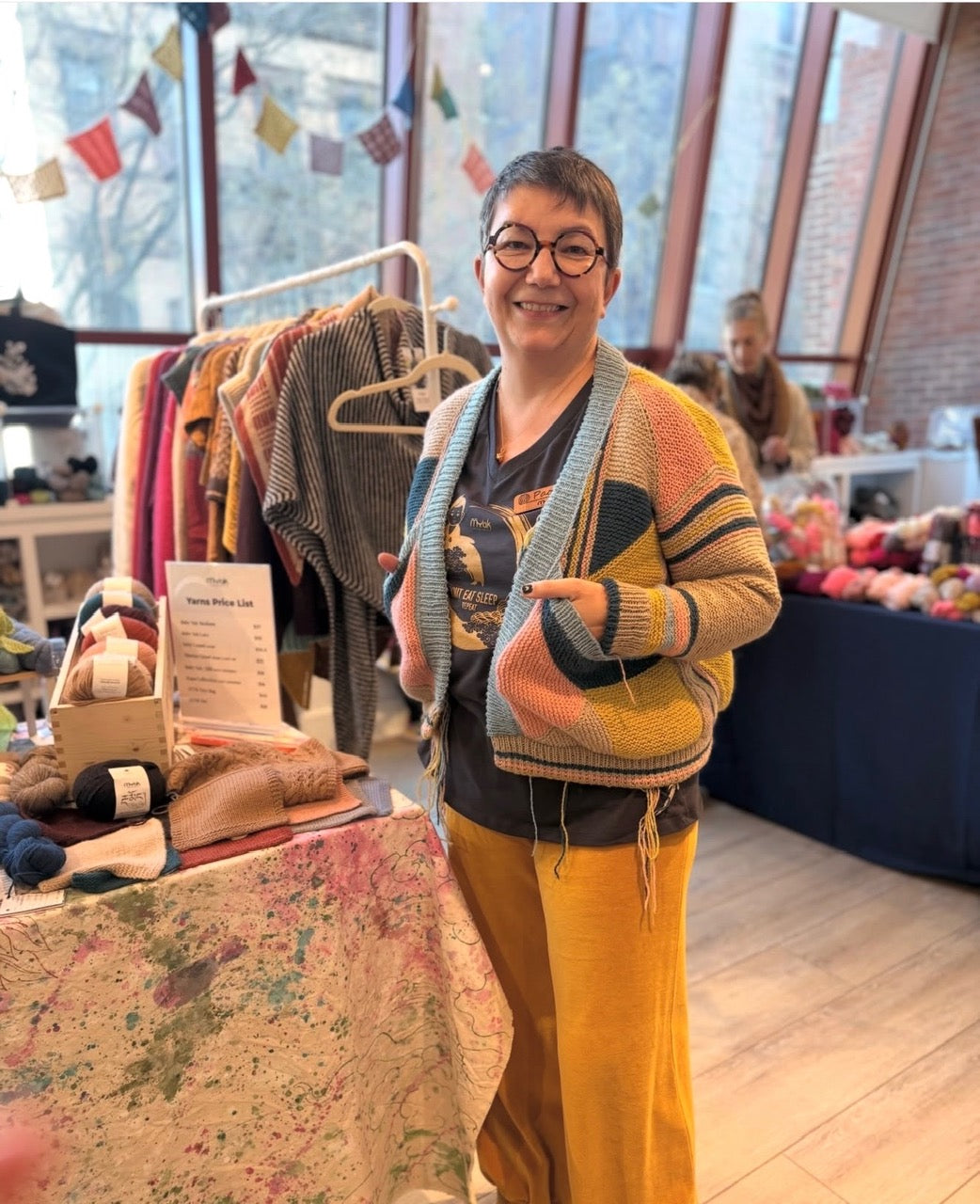 Yarn: mYak Tibetan Cloud, 5 colors (color selection TBD/available in shop) Pattern: Released first week of May 2026 Class size is limited β snag your spot before this one sells out! π§Ά